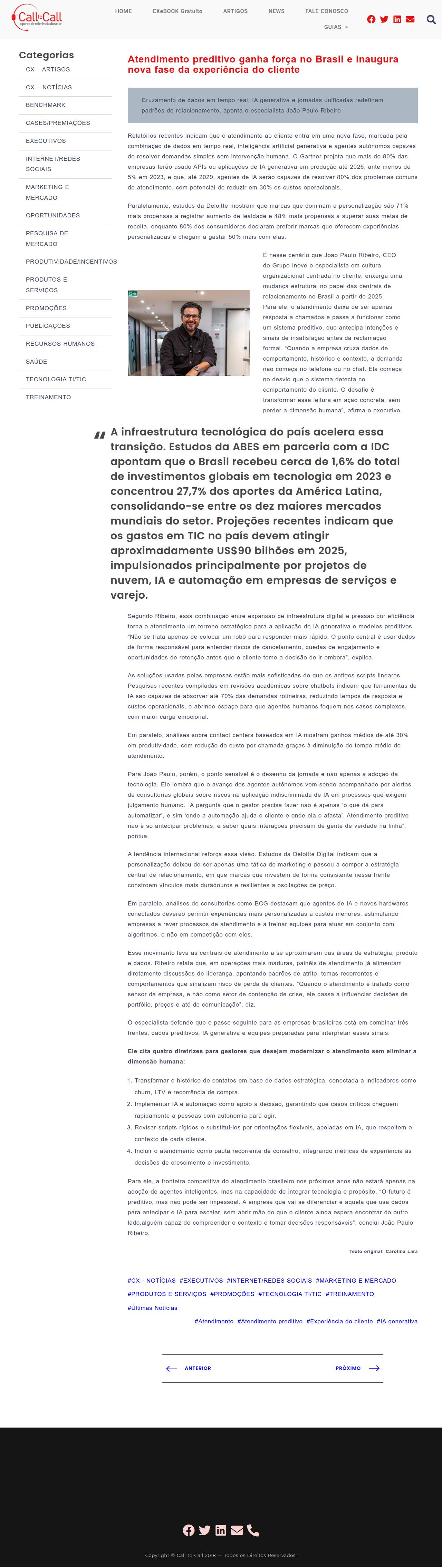 - Atendimento preditivo ganha força no Brasil e inaugura nova fase da experiência do cliente - Call to Call