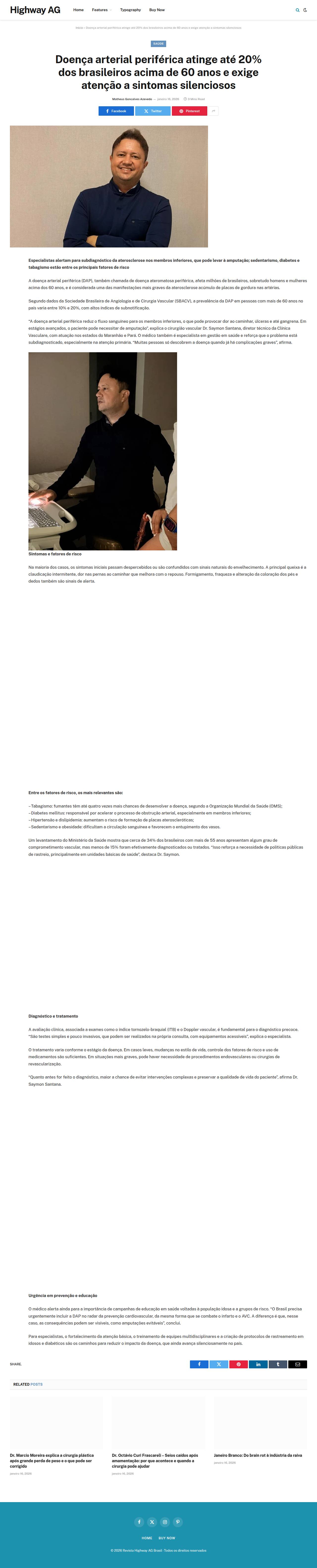Doença arterial periférica atinge até 20% dos brasileiros acima de 60 anos e exige atenção a sintomas silenciosos - highwayag.com.br