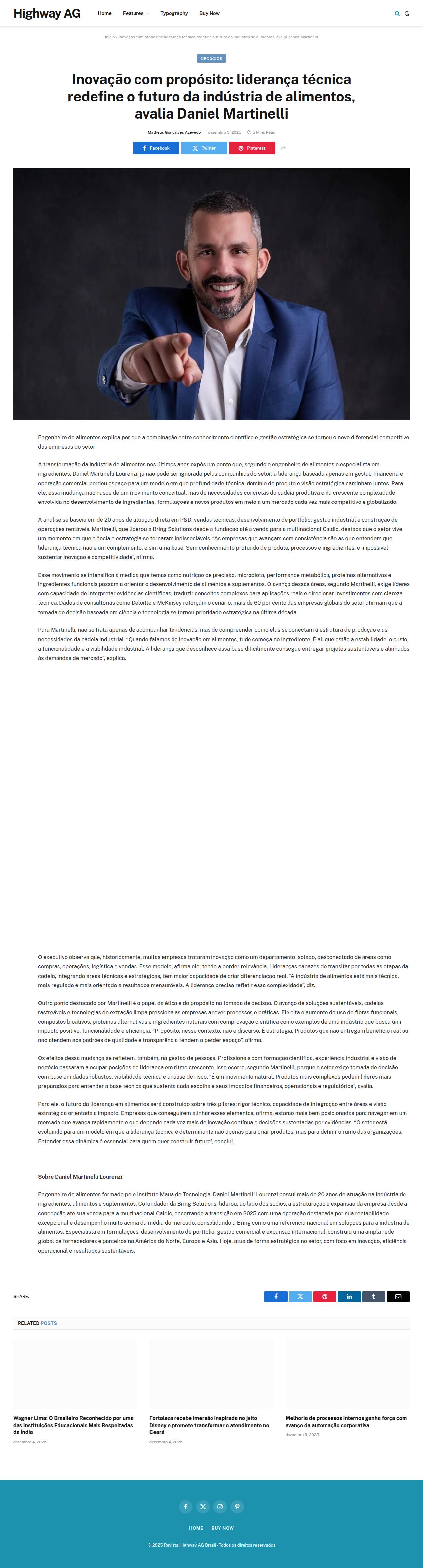 Inovação com propósito: liderança técnica redefine o futuro da indústria de alimentos, avalia Daniel Martinelli - highwayag.com.br