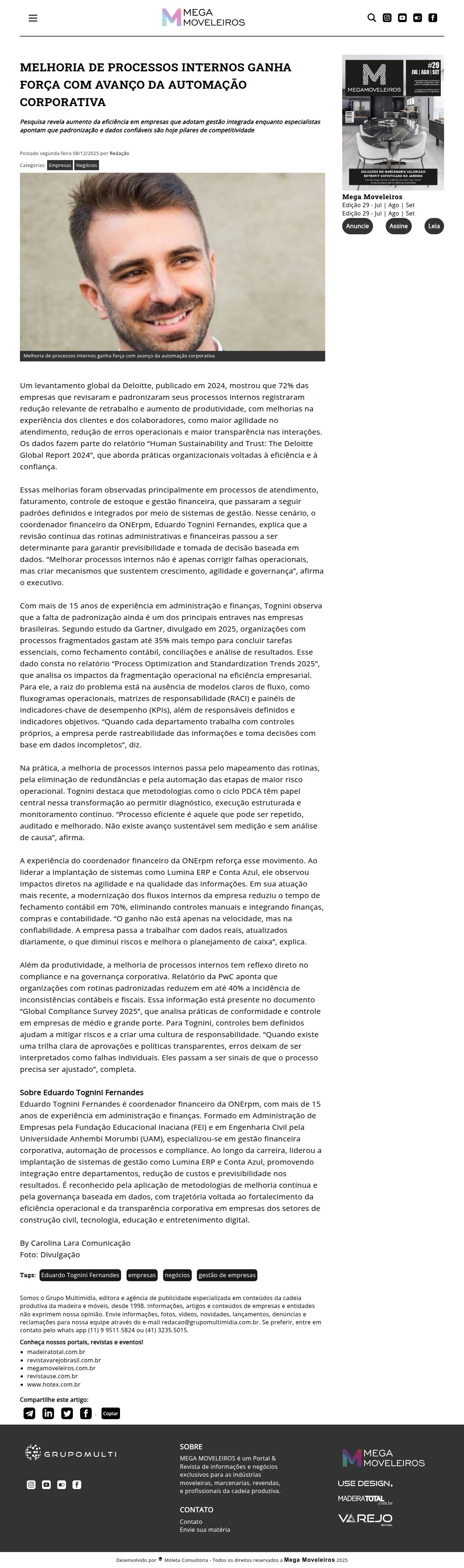 Mega Moveleiros - Melhoria de processos internos ganha força com avanço da automação corporativa