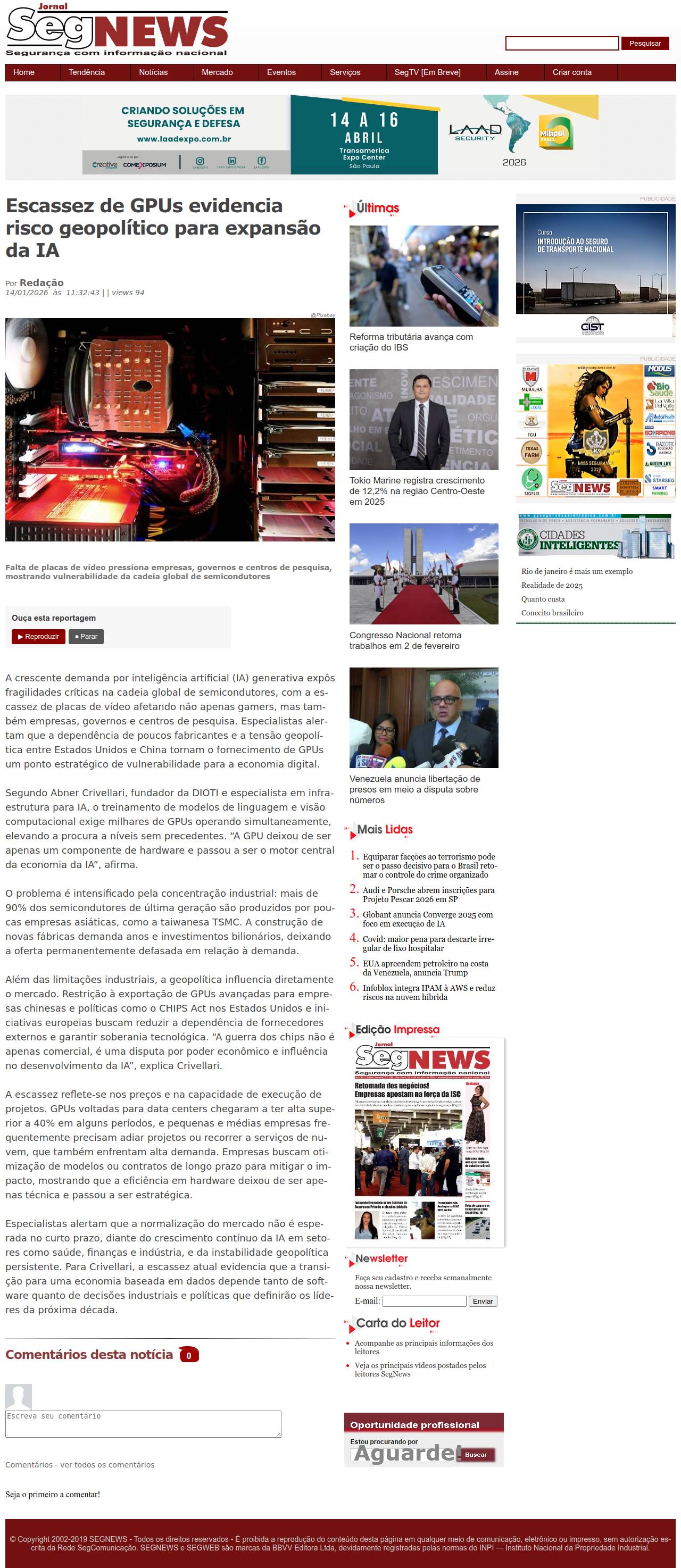 14/01/2026 - Jornal SegNews
